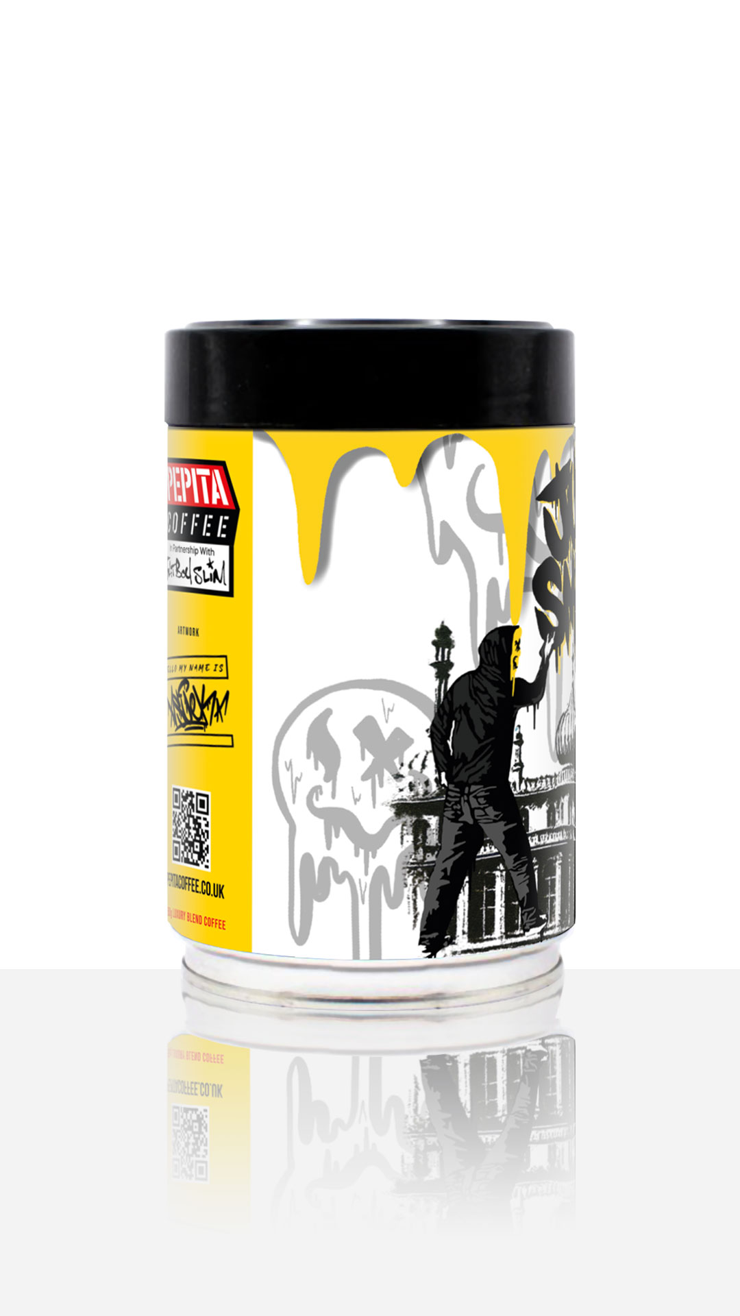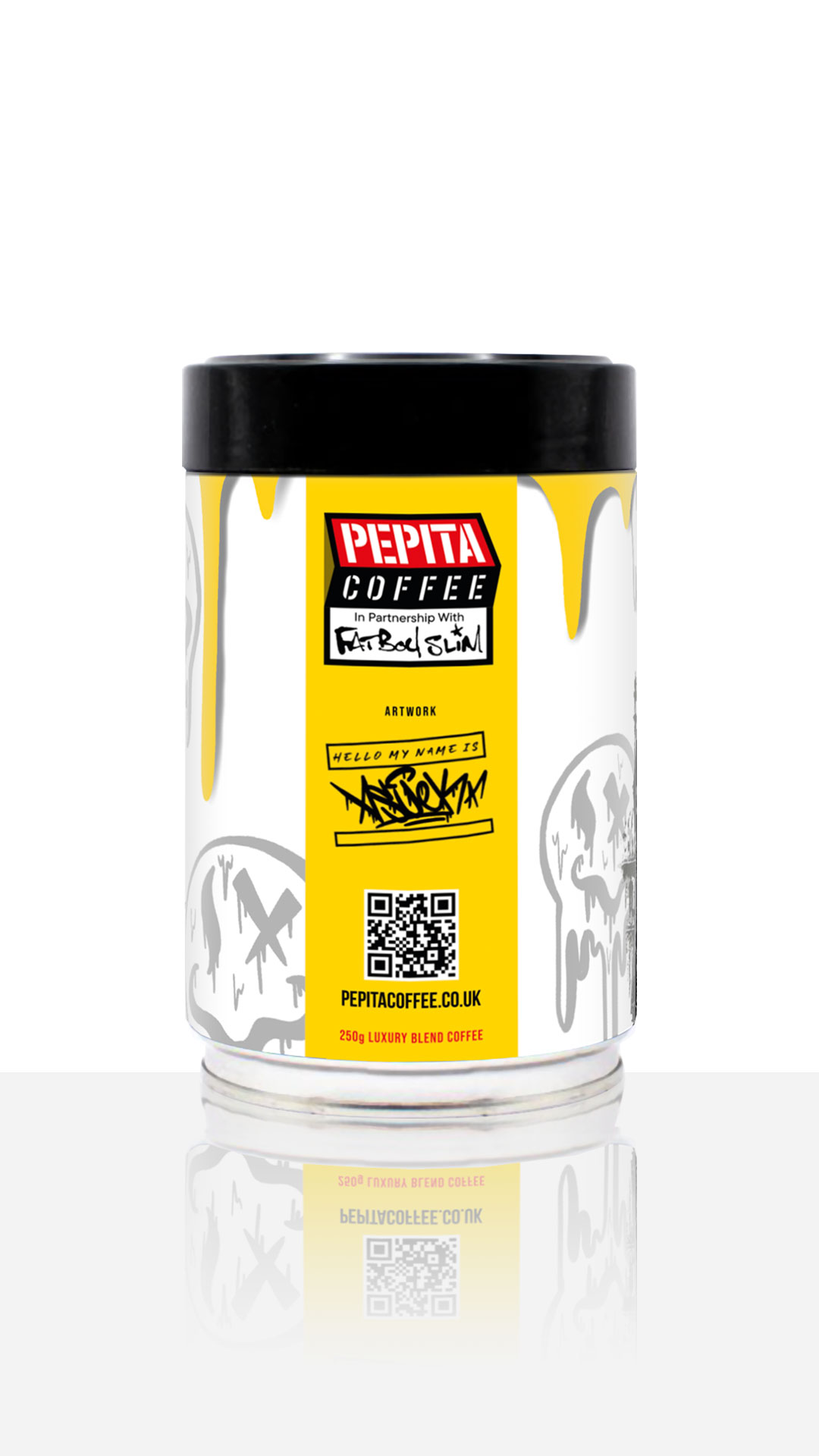In partnership with Fatboy Slim, Pepita Coffee is proud to bring you this limited edition coffee tin, featuring Asuek‘s captivating artwork. Don’t miss out on this opportunity to own a functional masterpiece that combines art, inspiration, and great coffee.