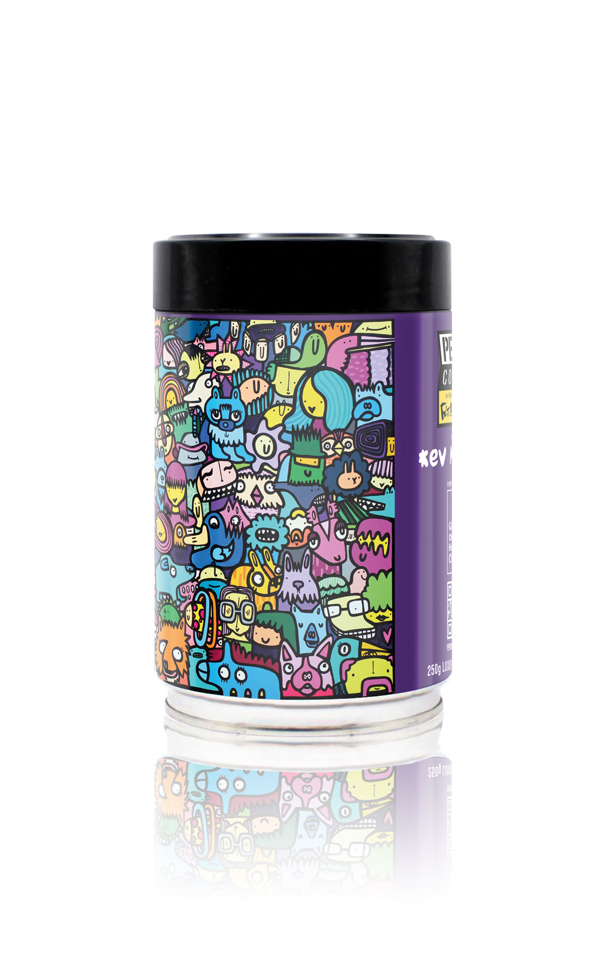 Each 100% reusable tin features exclusive artwork by celebrated British street and contemporary artist Kev Munday.