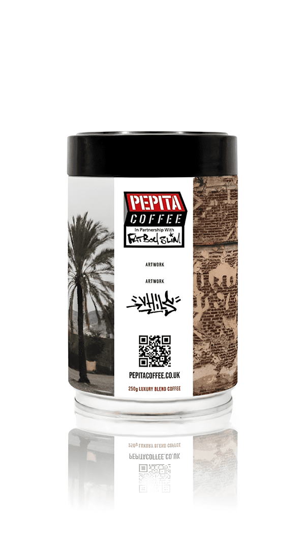 Pepita Coffee, in partnership with Fatboy Slim, proudly presents an extraordinary collaboration with world-renowned Portuguese artist Vhils – a collectable art coffee tin featuring his original artwork Mexico, packed with the finest luxury coffees from Colombia, Guatemala, and Ethiopia.