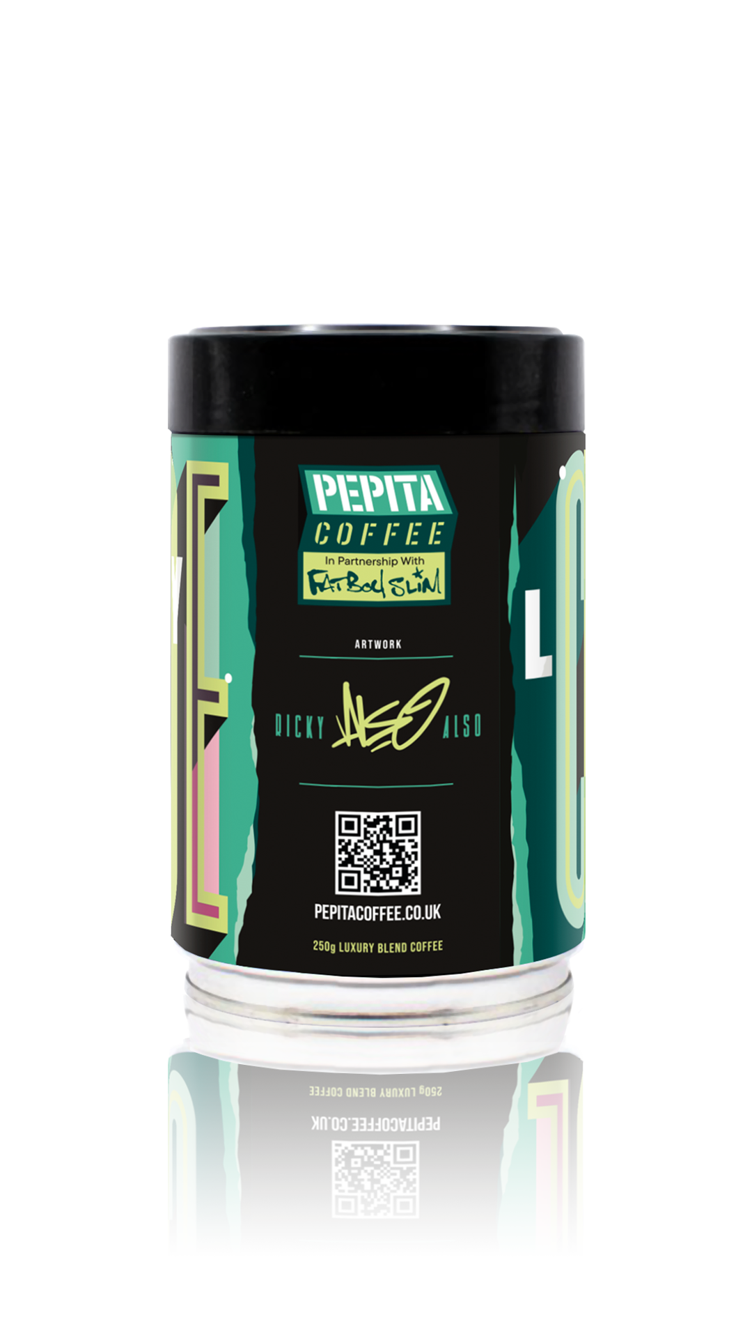 In partnership with Fatboy Slim, Pepita Coffee is proud to bring you this limited edition coffee tin, featuring Ricky Also’s stunning artwork. Don’t miss out on this opportunity to own a functional masterpiece that combines art, inspiration, and great coffee.