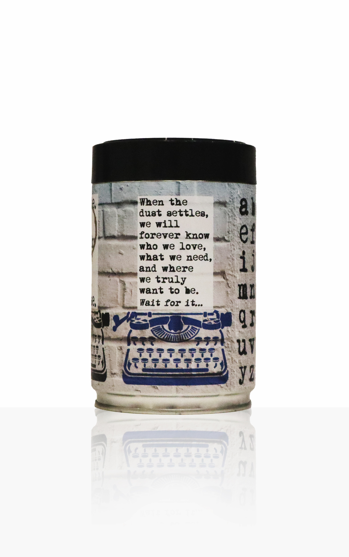 Discover the WRDSMTH Artist Collectable Coffee Tin, a collaboration with Pepita Coffee. This inspiring tin features exclusive artwork by WRDSMTH, a published author, screenwriter, and emerging street artist known for his iconic typewriter street art and uplifting messages.